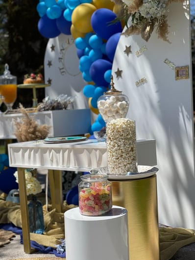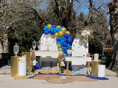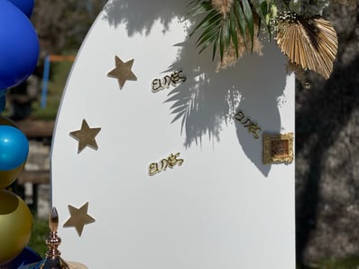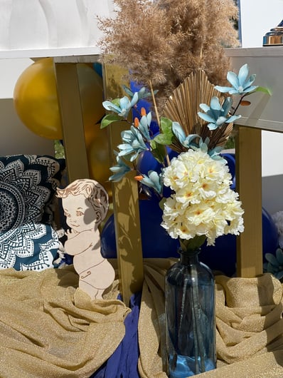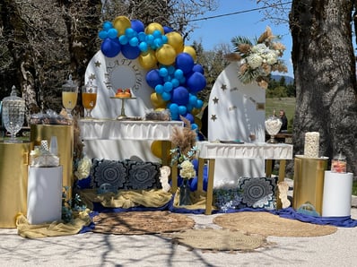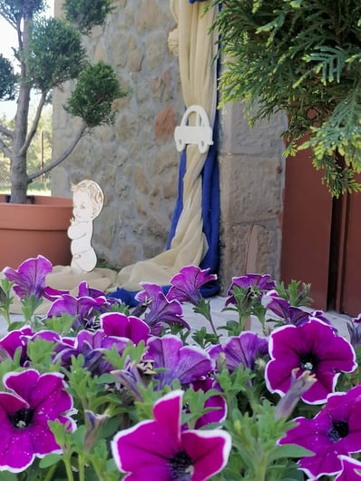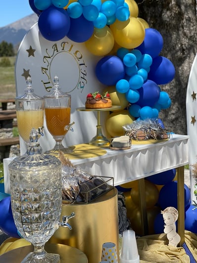 Παιχνιδιάρική βάπτιση μέσα στο δάσος Μέσα σε ένα πυκνό δάσος, στο γραφικό εκκλησάκι του Προφήτη Ηλία στη Μυρίκη Καρπενησίου στήθηκε το σκηνικό της βάπτισης του μικρού Παναγιώτη. Πρωτότυπα κεράσματα πρωινού, αμέτρητα μπαλόνια σε χρυσές και μπλε αποχρώσεις, αυτοκίνητα και μωράκια μαζί με πανέμορφα Royal Blue τριαντάφυλλα δεν θα μπορούσαν να αφήσουν ασυγκίνητο κανέναν.
