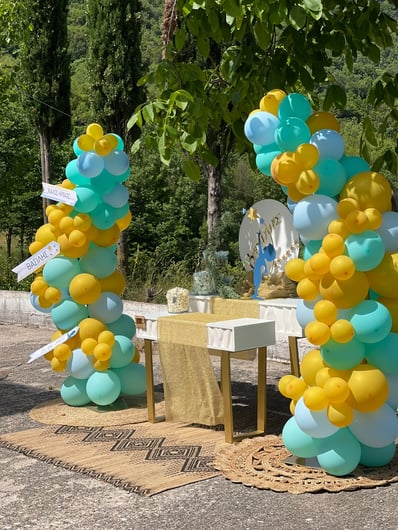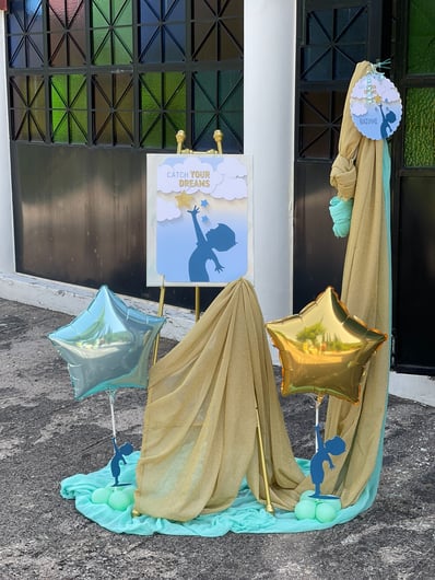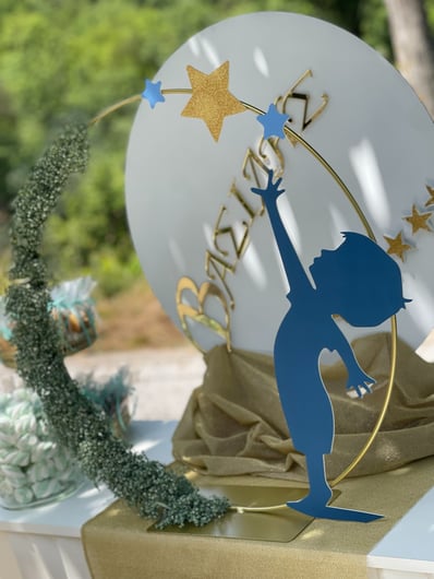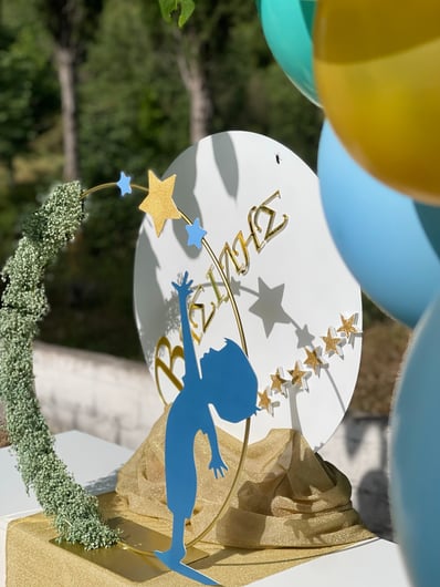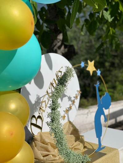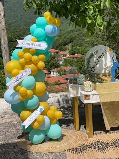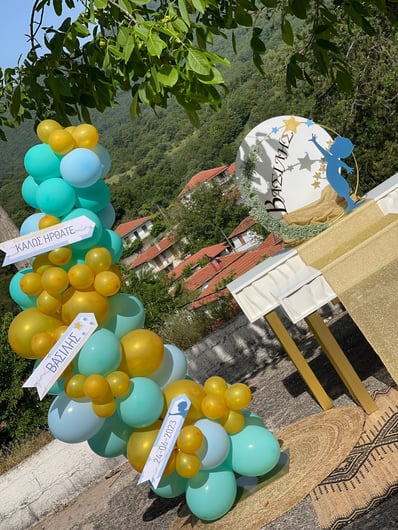 Μια όμορφη βάπτιση με θέμα τα αστέρια. Στη βάπτιση του μικρού Βασίλη παροτρύνουμε όλους να κυνηγήσουν τα όνειρά τους ακόμη κι αν αυτά είναι τόσο ψηλά όσο τα αστέρια του ουρανού.Ο μικρός Βασίλης βαπτίστηκε σε ένα γραφικό εκκλησάκι μέσα στην καρδιά της φύσης στο ιστορικό χωριό της Βίνιανης.Ο χώρος ντύθηκε στις αποχρώσεις του σιέλ, της μέντας και του χρυσού και εμπλουτίστηκε με αστέρια και πολλά-πολλά μπαλόνια κάνοντας το σκηνικό ακόμη πιο παιχνιδιάρικο.