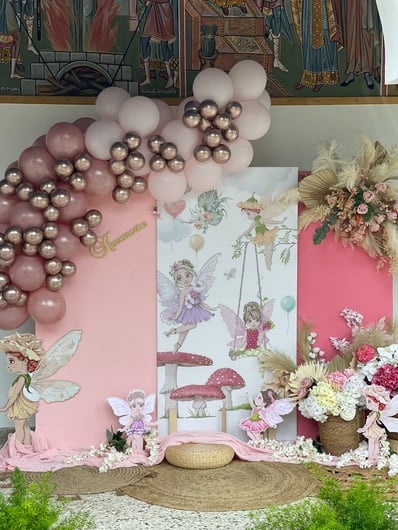 Ονειρεμένη νεραϊδένια βάπτιση. Στην εκκλησία της Αγίας Κυριακής στο Νέο Μικρό Χωριό οι νεράιδες είχαν την τιμητική τους…Σε ένα φθινοπωρινό σκηνικό πραγματοποιήθηκε η ονειρεμένη βάπτιση της μικρής Κωνσταντίνας. Πανέμορφες νεράιδες που χορεύουν σε ένα παραμυθένιο σκηνικό γεμάτο λουλούδια, χρώματα και αμέτρητα μπαλόνια.Στολισμένα donuts, cupcakes και cake pops με βρώσιμα λουλούδια και μπισκοτάκια με μικρές νεράιδες ήρθαν να ολοκληρώσουν αυτό το πανέμορφο σκηνικό.
