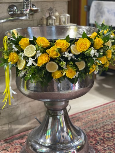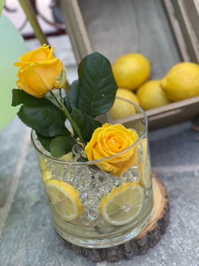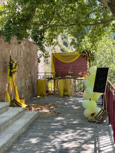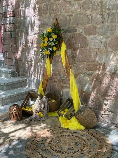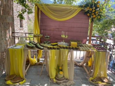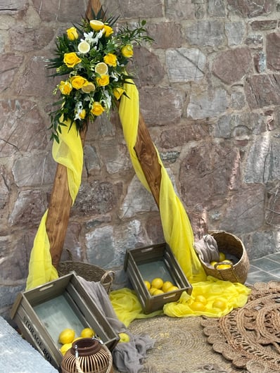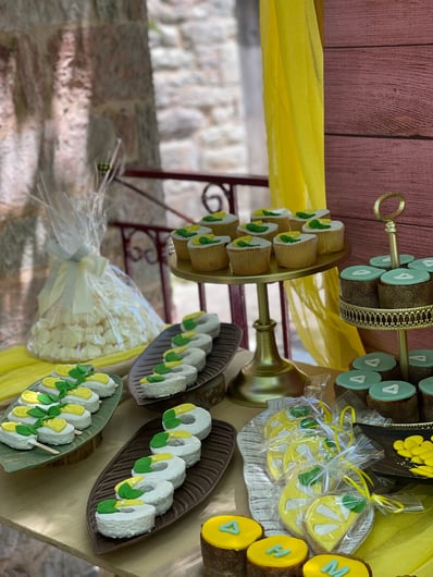 Βάπτιση με θέμα το λεμόνι Λαμπερά χρώματα και ζωντάνια για αυτή την καλοκαιρινή βάπτιση στην Ιερά Μονή Προυσσού. Εμπνευσμένοι από την δροσερή ζωντάνια των λεμονιών, πλεγμένα με κίτρινα τριαντάφυλλα και πρασινάδα, δεμένα σε ένα σκηνικό με βάση το ξύλο και την πέτρα δημιουργήσαμε το σκηνικό για τη βάπτιση του μικρού Κωνσταντίνου. Απαραίτητη λεπτομέρεια στο candy bar η δροσερή λεμονάδα, τα γλυκακια με λεπτομέρειες λεμονάκια και μικρές lemon pie που ολοκλήρωσαν το σκηνικό αυτής της δροσερής βάπτισης.