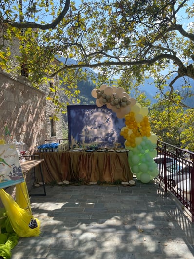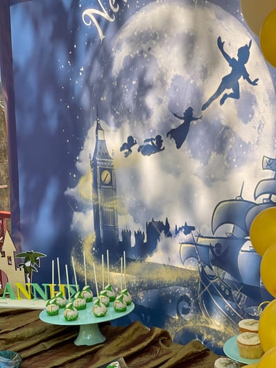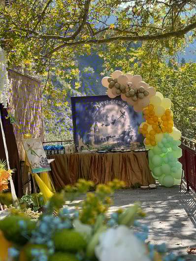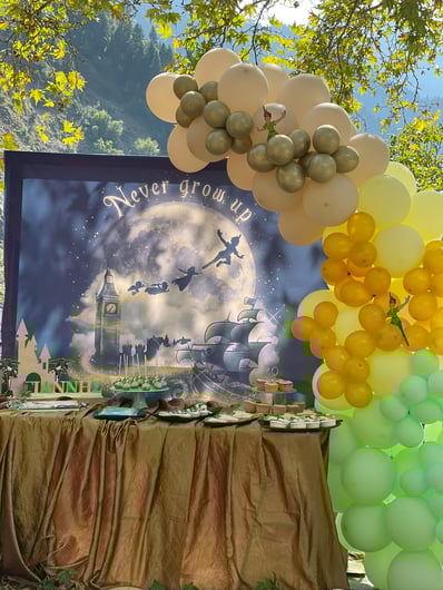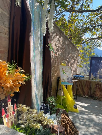Φθινοπωρινή βάπτιση με θέμα τον Πίτερ Παν. Σε ένα φθινοπωρινό σκηνικό στην Ιερά Μονή Προυσού στήσαμε ένα σκηνικό που μας μετέφερε στον παραμυθένιο κόσμο του Πίτερ Παν και της χώρας του Ποτέ. Ο περιπετειώδης Πίτερ Παν προσκάλεσε μικρούς και μεγάλους σε ένα κόσμο γεμάτο νεράιδες -καταρράκτες – πειρατές και κάθε λογής λιχουδιές…Το candy table ντύθηκε με ένα καταρράκτη υφάσματος που θύμιζε σοκολάτα για να συμπληρώσει ένα νυχτερινό σκηνικό με τον Πίτερ Παν και τους φίλους του. Εμείς κρατήσαμε το ‘’Never Grow Up’’ και το γλυκό χαμόγελο του μικρού Ιωάννη που ποζάρει ξέγνοιαστος στα νερά του ‘’καταρράκτη’’.