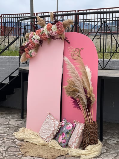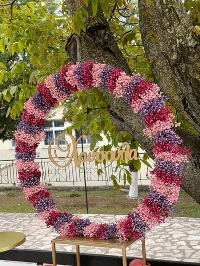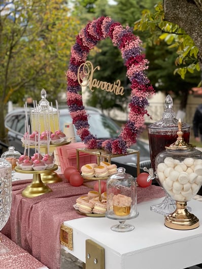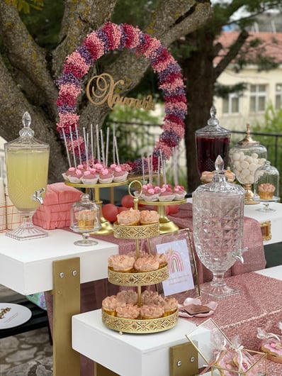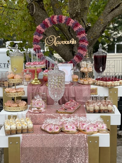 Ένα διαφορετικό ουράνιο τόξο για τη μικρή Χρύσλα Με ένα χαριτωμένο παιχνίδισμα αποχρώσεων δημιουργήσαμε ένα μοναδικό ουράνιο τόξο με έντονα στοιχεία boho, chic λεπτομέρειες, μαξιλαράκια, καλάθια, υφάσματα για τη μικρή Χρύσλα.Ροζ, φούξια,λιλά αποχρώσεις σε ένα συνδυασμό με μπορντό, pink blush και nude επιλογών έδεσαν καταπληκτικά με το παραδοσιακό στοιχείο της πέτρας και τα δέντρα του προαυλίου του Ναού δίνοντας ένα αποτέλεσμα άκρως εντυπωσιακό. Από το candy bar δε θα μπορούσαν να λείπουν γλυκάκια πραγματικά κοσμήματα.