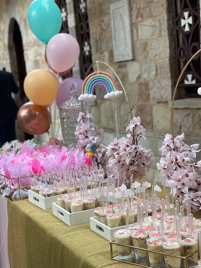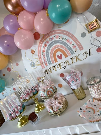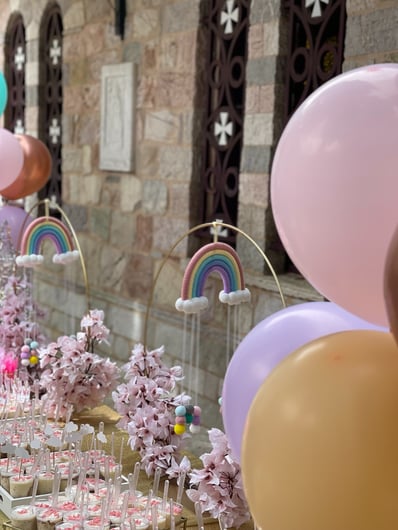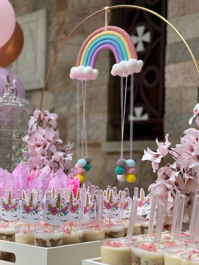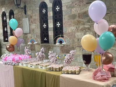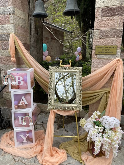 Ρομαντική βάπτιση με θέμα το ουράνιο τόξο Μια βάπτιση γεμάτη χρώματα ήταν η βάπτιση της μικρής Αγγελικής που πραγματοποιήθηκε στην Ιερά Μονή Προυσού. Ουράνια τόξα, pon-pon, πολύχρωμα μπαλόνια κι μια γωνιά photobooth με εντυπωσιακό καθρέφτη έδωσαν ένα παιχνιδιάρικο αποτέλεσμα που εντυπωσίασε μικρούς και μεγάλους.