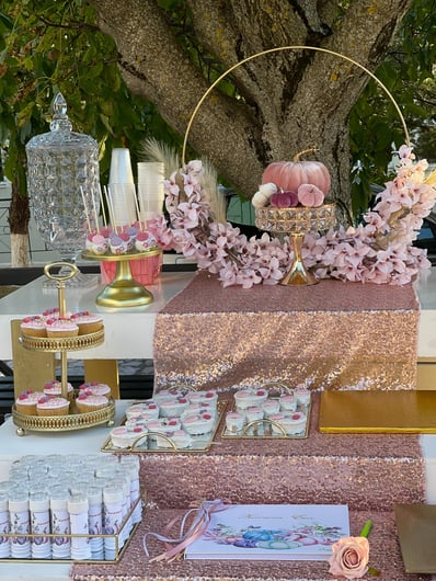 Παραμυθένια φθινοπωρινή βάπτιση με θέμα την κολοκύθα. Μια παραμυθένια βάπτιση με ένα άκρως φθινοπωρινό θέμα, την κολοκύθα. Pραγματοποιήθηκε στον Ναό του Προφήτη Ηλία Καρπενησίου. Με φόντο το όρος βελούχι και περιτριγυρισμένο με δέντρα στήθηκε στο προαύλιο του Ναού ένα γλυκύτατο candy bar σε αποχρώσεις του σάπιου μήλου, υφάσματα με λαμπερές παγιέτες, λουλουδένιες λεπτομέρειες, κρυστάλλινα διακοσμητικά και βελούδινες κολοκύθες που ολοκληρώθηκε με γλυκάκια στολισμένα με χαριτωμένα κολοκυθάκια από ζαχαρόπαστά.